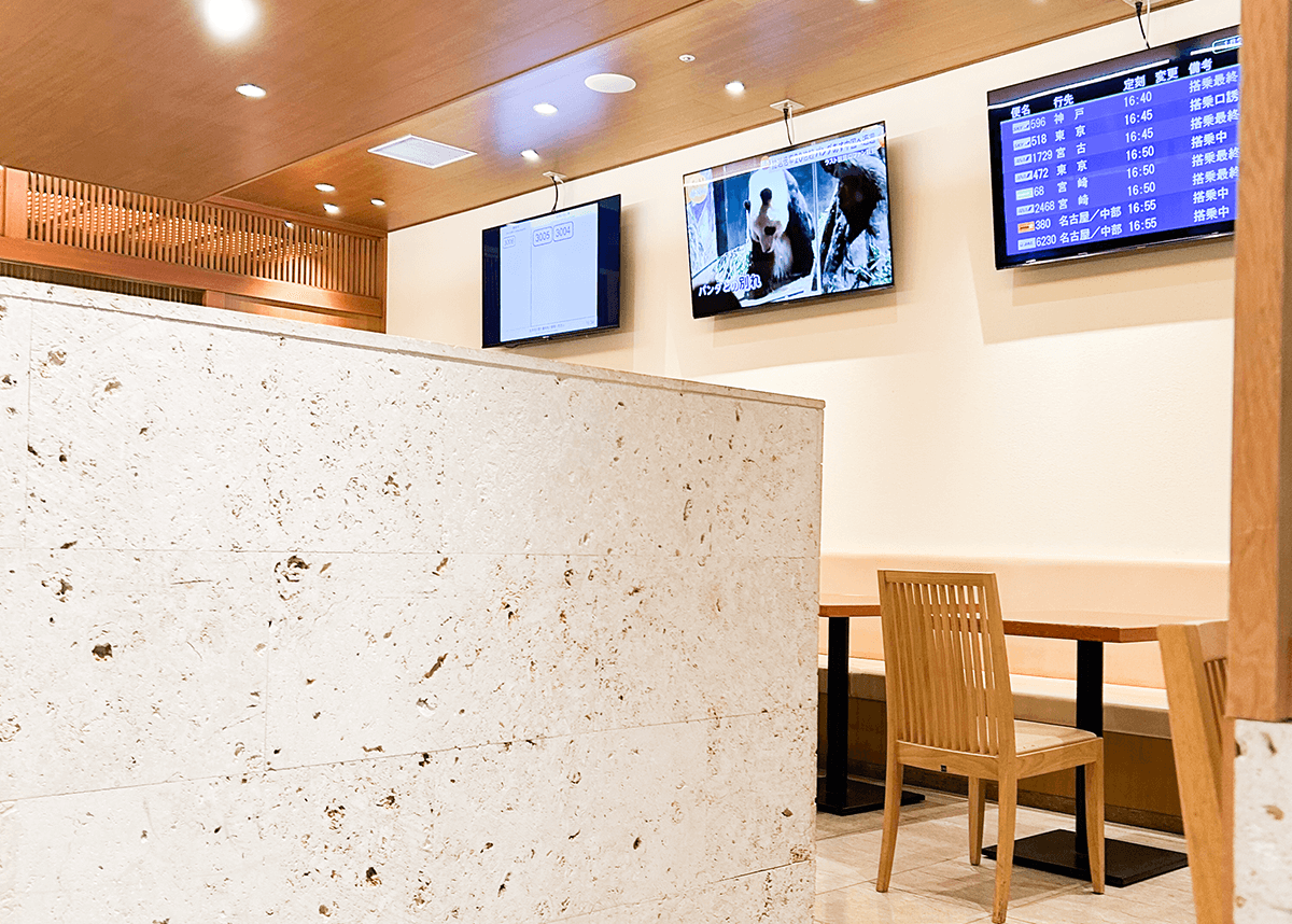 テーブル席からモニターをご覧いただけます